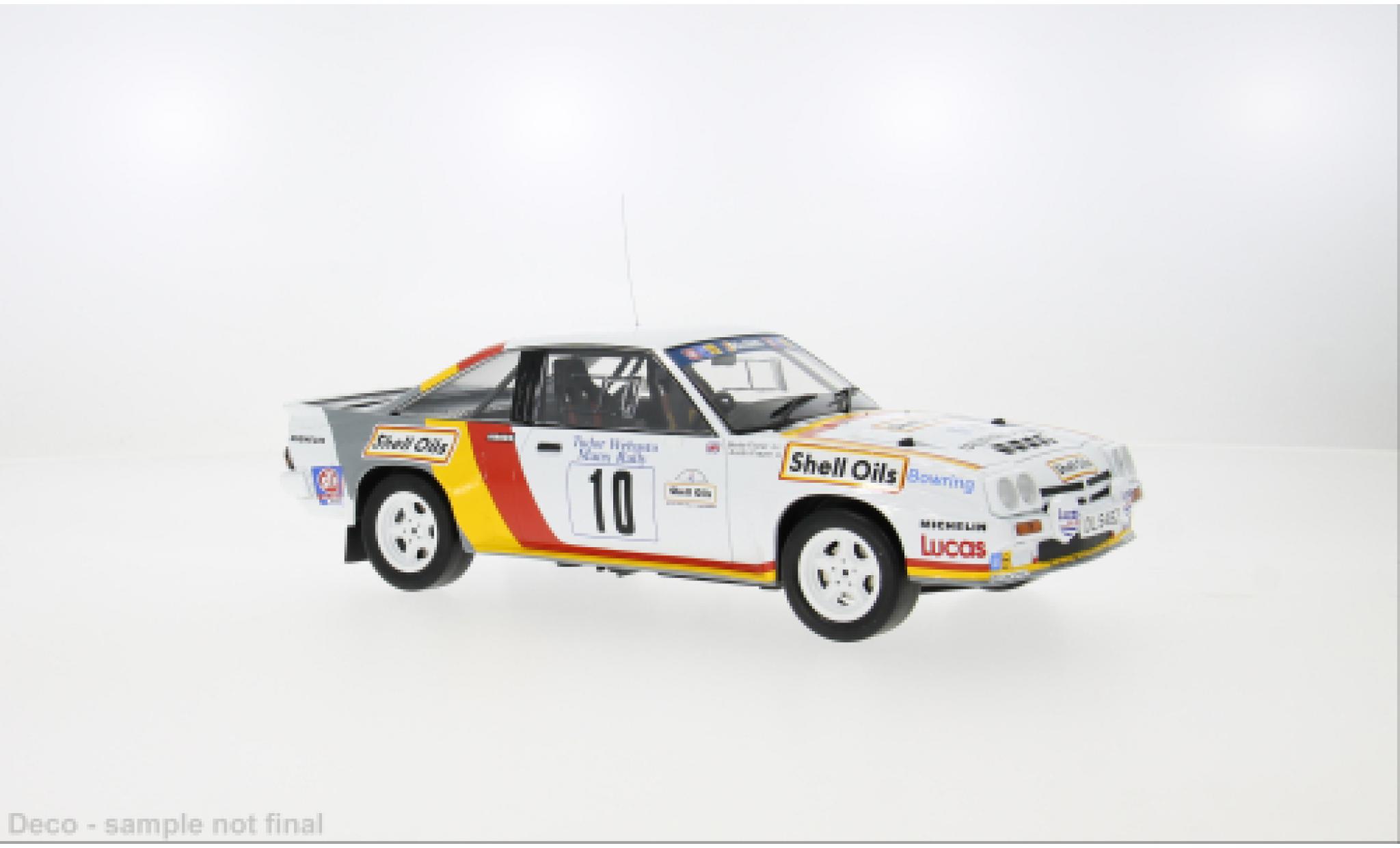 DU BIST HIER : MINIATURAUTO > OPEL MODELLAUTOS > OPEL MANTA MODELLAUTOS > Opel Manta 1/18 IXO B 400 Rallye Manx 1985 #10 B.Fisher/A.Frazer 1:18