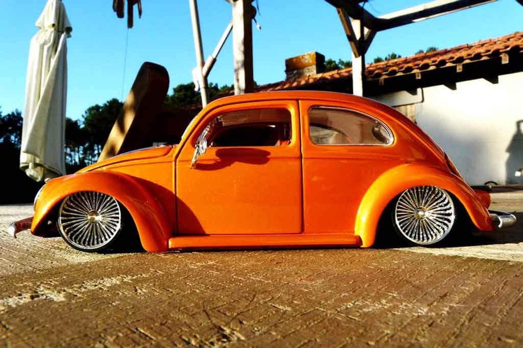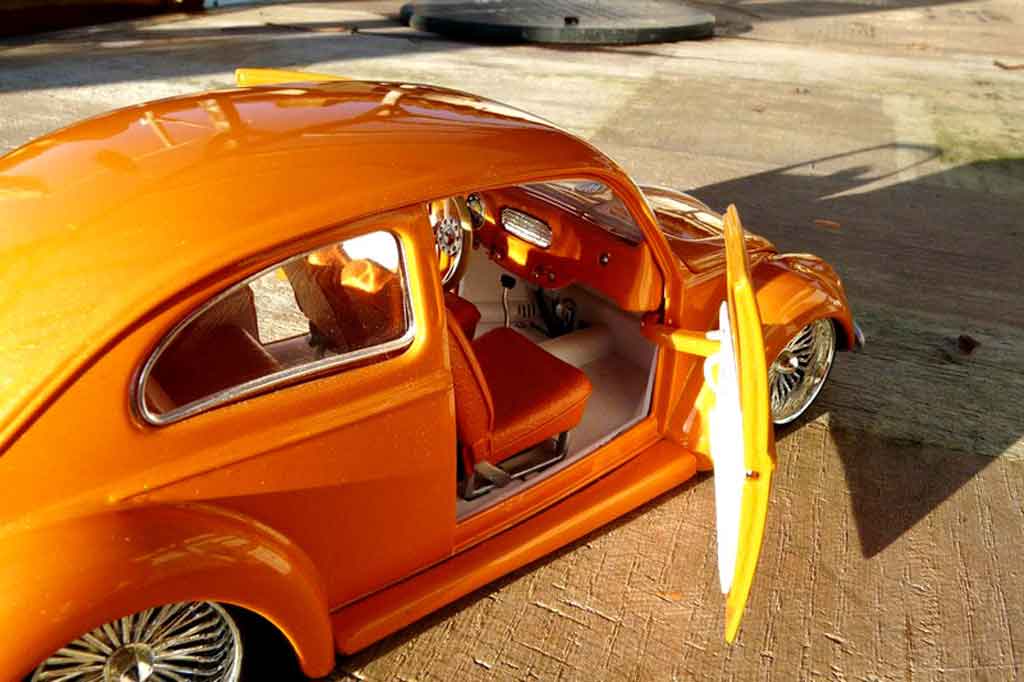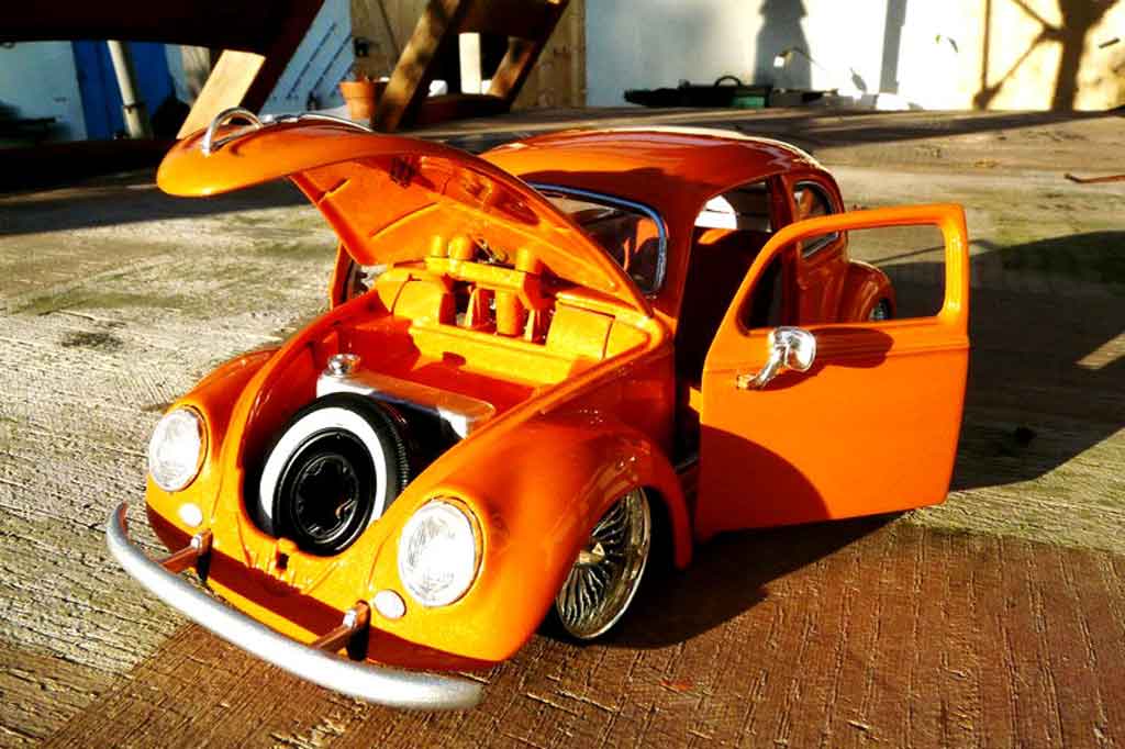 DU BIST HIER : MINIATURAUTO > VOLKSWAGEN MODELLAUTOS > VOLKSWAGEN COXINELLE MODELLAUTOS > Volkswagen Kafer 1/18 Burago 1955 cox low ride orange