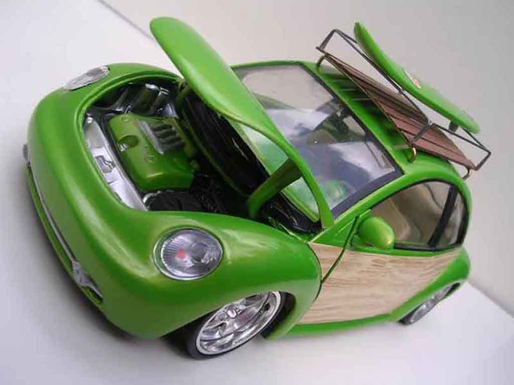 DU BIST HIER : MINIATURAUTO > VOLKSWAGEN MODELLAUTOS > VOLKSWAGEN NEW BEETLE MODELLAUTOS > Volkswagen New Beetle 1/18 Burago woody green surf california